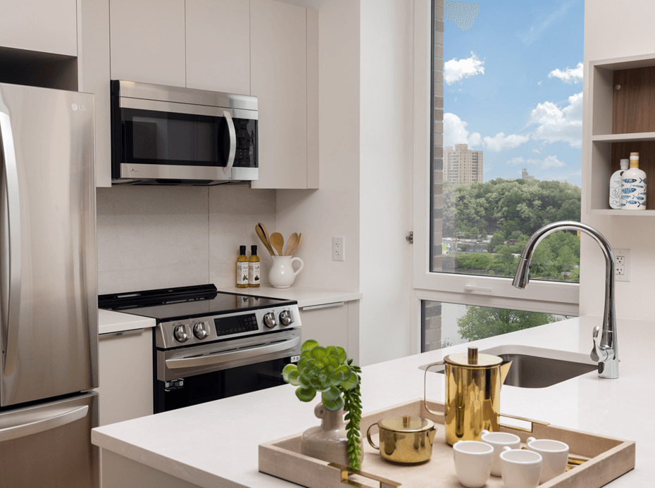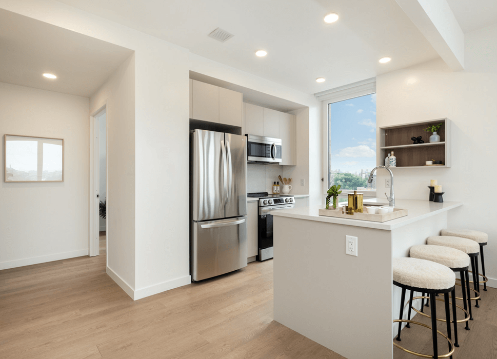 The Miramar stands as a transformative mixed-use development in the Inwood neighborhood of Manhattan. Spanning a full city block, this dual-tower project brings 698 rental units to the waterfront, including 281 units dedicated to affordable housing. Designed by Beyer Blinder Belle and developed by LMXD, Taconic Partners, and MSquared, we were proud to contribute to this landmark project by delivering a diverse range of premium materials on time and within budget. The project features a striking, expansive lobby finished with Casalgrande Padana’s Le Ville collection. Utilizing 48"x48" large-format terrazzo-look tiles, New Rock Marble & Tile expertly executed the installation to achieve a sophisticated aesthetic that anchors the building’s ground floor. Our contribution continued into the residences, where we supplied a diverse palette of high-performance porcelain, ceramic wall tiles, and Hanstone quartz surfaces. Integrated with MAPEI technical systems throughout the project, these materials deliver a sophisticated finish built to withstand the demands of modern city living.